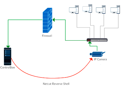 The -e switch causes bash to execute upon connection to Controlbox giving us a reverse shell to the IP camera from the Controlbox host with root privileges as shown below in Figure 4: