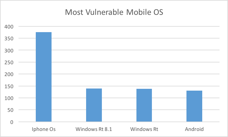 IPhone OS has the highest number of vulnerabilities published in 2015. Windows and Android came after iPhone. 2014 was no different. iPhone OS had the highest number of vulnerabilities and Windows Rt and Android followed it.
