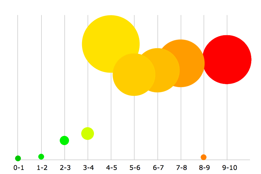 This chart shows weight distribution of 2015 vulnerabilities, based on CVSS score. As (hopefully) most of you know, 10 is the highest/most critical level, whereas 1 is the least critical level.