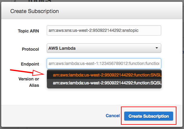 Now you are ready to subscribe the Lambda function to the SNS topic you create earlier.