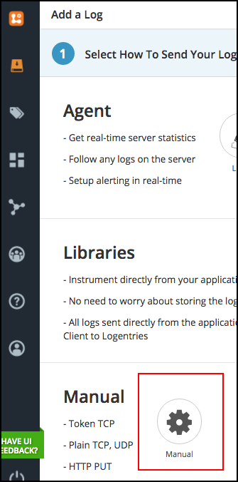 When you Add a Log, you will be provided with a page that offers choices as to the type of Log you want to create. We’re going to create a log manually, so select Manual as highlighted in a red border below in Figure 4.
