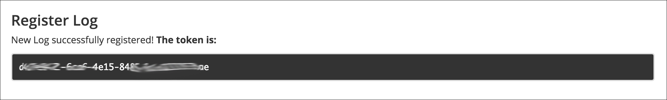 Upon creating the Log, the token that corresponds to the log will be displayed, as shown in Figure 6, below.