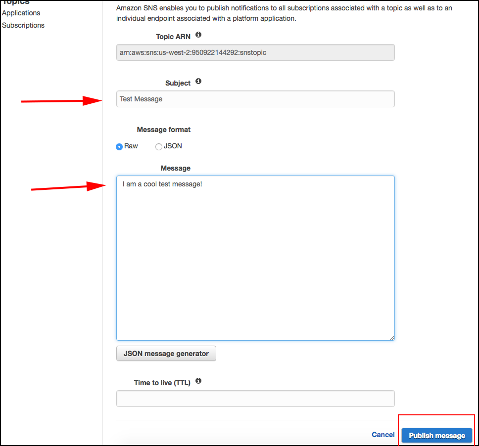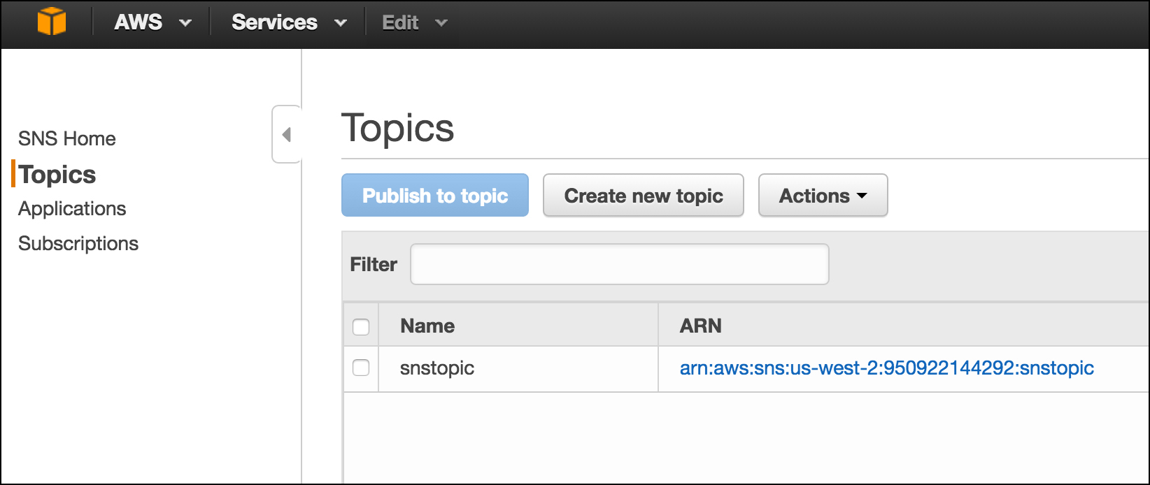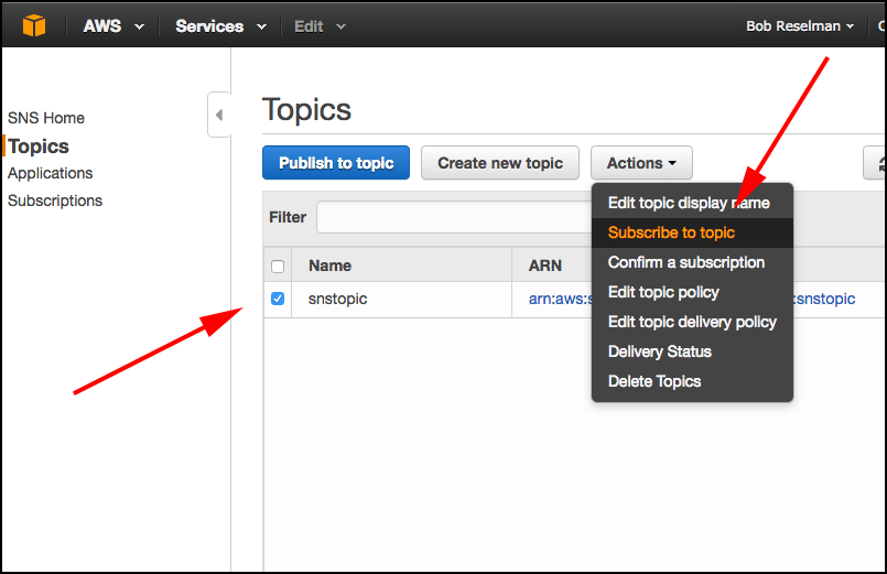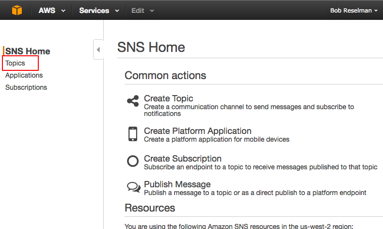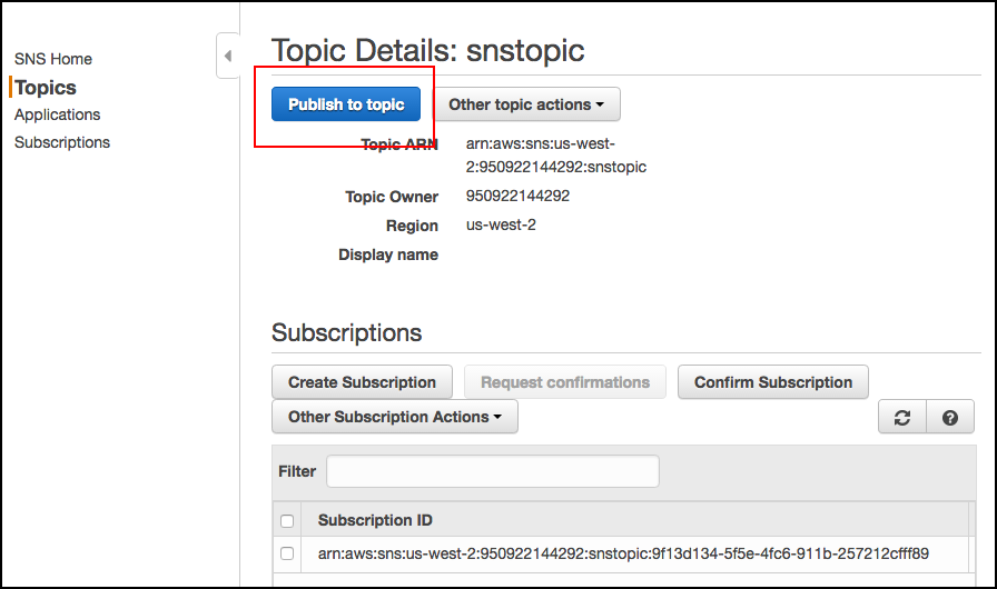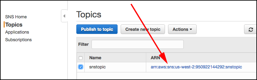 Creating the SNS Topic in Amazon Web Services