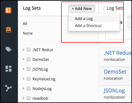 In order to create the log set and token in Logentries, login to the Logentries site, click the button labeled, Add New and select, Add a Log, as shown in Figure 3, below.