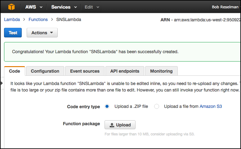 Figure 8: Your Lambda function will subscribe to a SNS Topic you create