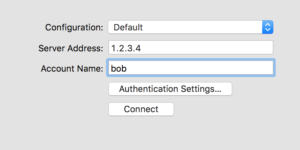 Add the server’s public IP address, a username on the VPN server, and click on Authentication Settings.