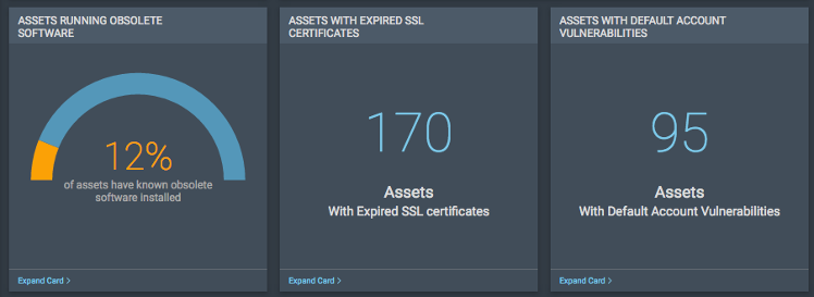 Consider the three Cards above. Driving Assets with Expired SSL Certificates to zero is a worthy goal, as is minimizing Assets Running Obsolete Software. But, these metrics may require refinement before taking action in your organization. If your remediation teams work on a site-by-site basis, understanding the percentage of assets running obsolete operating systems is interesting but not sufficient to drive remediation. When you're trying to get to fix faster, getting to action in your remediation teams is critical. We could help our cause by breaking down our data into parcels the remediation teams understand.