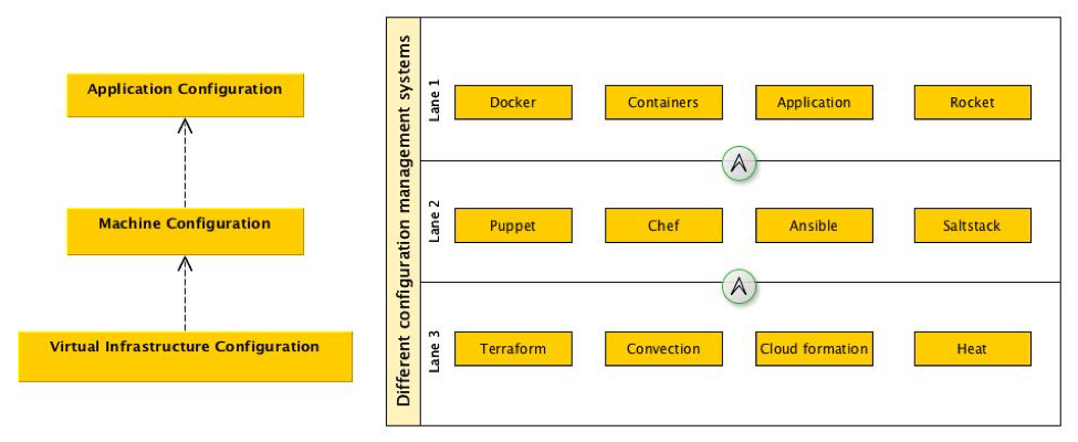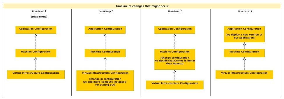 There are already existing tools which address the repeatable and reproducibility of infrastructure at different tiers. For example, tools like Terraform and Convention allow engineers to manage the clould infrastructure. Configuration management tools such as Ansible, Saltstack, Chef, NixOps and Puppet provide a means of laying down what a server might look like right up to the point of deploying the application. Container formats such as Docker, Rocket and plain LXC allow developers to package up applications to be deployed on the provisioned machines. At each of these tiers of configuration management, it’s possible to make some associations and relationships between a load balancer to a group of hosts which provide a particular service. As a SRE, Platform Delivery, DevOps, or operations ninja that attacks the problem of maintaining all these components we place these definitions into version control. Most engineers in this space are aware of modern distributed version control systems such as Git and Mercurial so there is a notion of hashing content already. It’s clear that some tiers are better serviced at being reproducible, but it’s not immediately obvious what the system looks like when taking a broader view of how everything is interconnected.