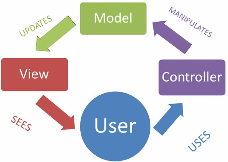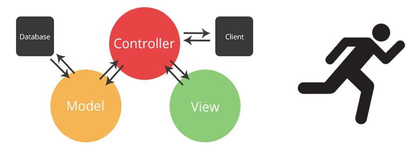 Getting back to web (frontend), usually, our apps end up having a view attached to a controller that listen its events (triggered by user or not), delegates some actions and update the models. Then, the updated models are consumed and rendered into the view.