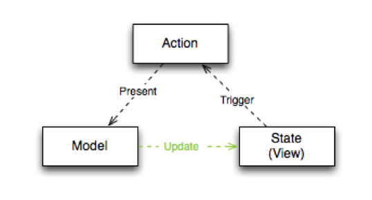 That is a simple way of seeing it on MVC shape if you want (SAM – State, action, model):