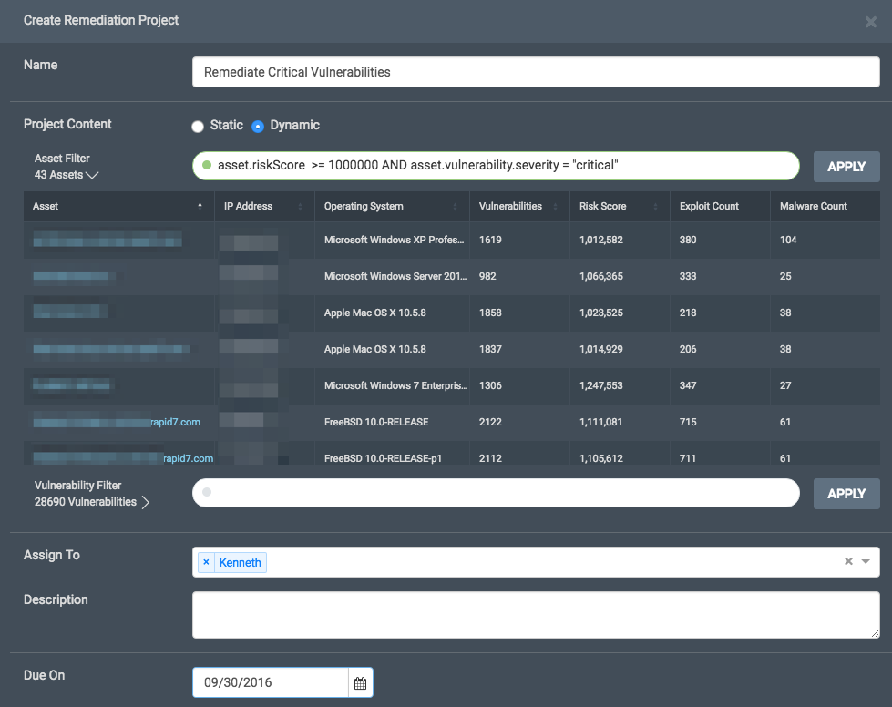 We've also been working on a new workflow tool to streamline the next part of the job - fixing exposures. Remediation Workflow (Beta) allows you to convert exposures into vulnerability remediation projects for assigning and tracking progress. This week we're opening up this new capability to all Nexpose Enterprise and Ultimate users.