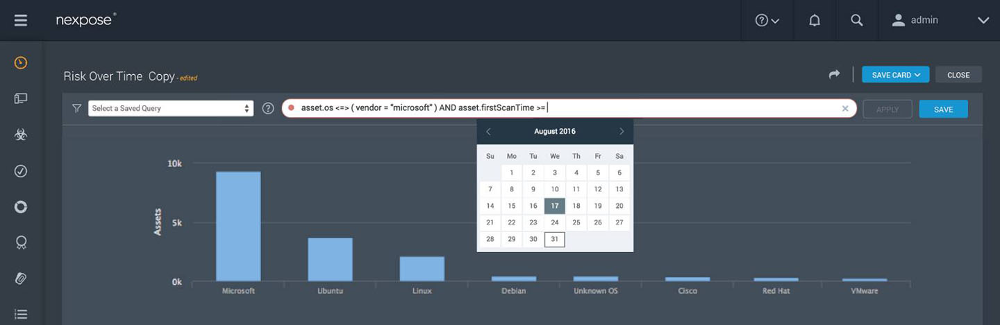 Nexpose Now's Liveboards (aka Dashboards) were designed with the goal of making big data easy to digest. Each default Liveboard contains data cards that provide analytics which help users answer questions they didn't even know they had. We show just what users need, no more and no less. But they can expand into their cards to reveal more information, explore, apply custom filter queries, etc.
