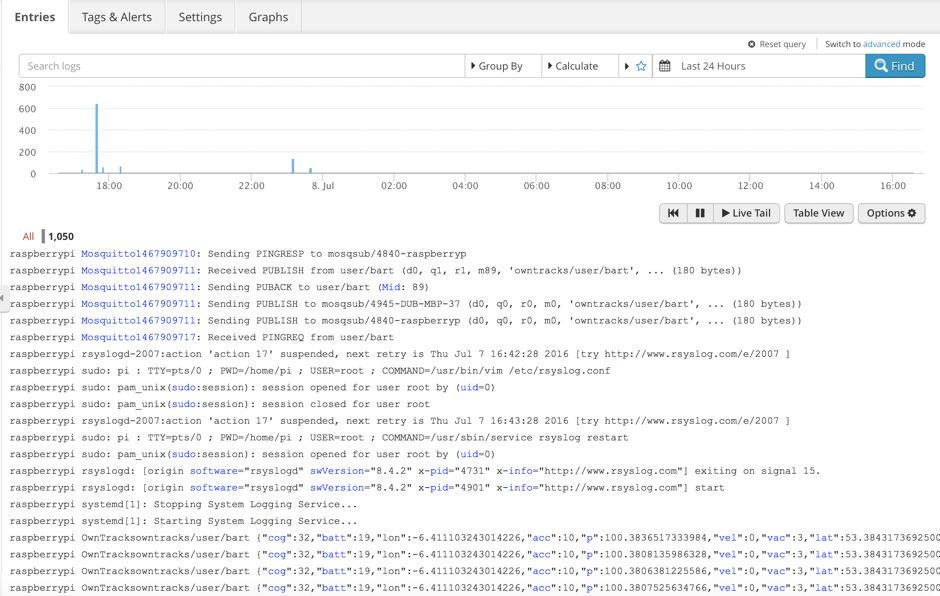 So, let’s use Logentries to collect, store and analyze logs generated by the Mosquitto server we’ve set up.