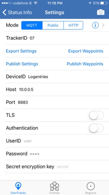 Now we can connect the OwnTracks phone and Raspberry Pi via WiFi (you could also use 3G).