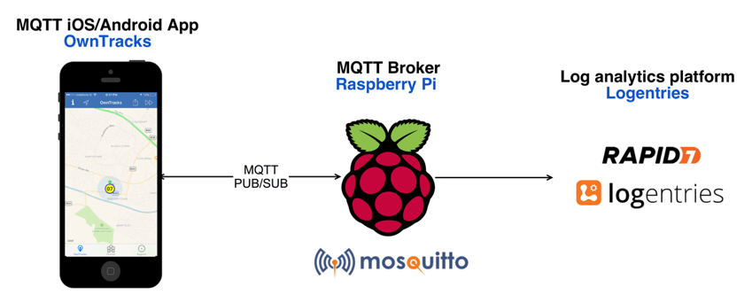 A previous blog showed how MQTT logs can be sent to Logentries for storage, analysis and how those logs can be to alert on potential MQTT security threats, as well as to store and visualize sensor data. This blog follows that by showing how to build a fully connected IoT system composed of the OwnTracks iOS app as an MQTT publisher, a Raspberry Pi with Mosquitto embedded as an MQTT messaging broker and Logentries as the log analytics platform used to collect, store and analyze data.