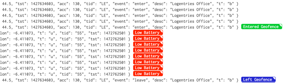 There are potentially hundreds of applications, where above functionality can be used. It could be a parent looking to find out where its child is, or law enforcement representative wanting to be alerted about persons most recent position, business owner locating nearest driver or evil boss willing to be notified every time you leave your office or even your own desk, which is possible, since OwnTracks can integrate with very accurate iBeacons. Sending OwnTracks data to Logentries not only provides the user with real-time alerts, but can be used to trackback historical location and behavior of particular user.