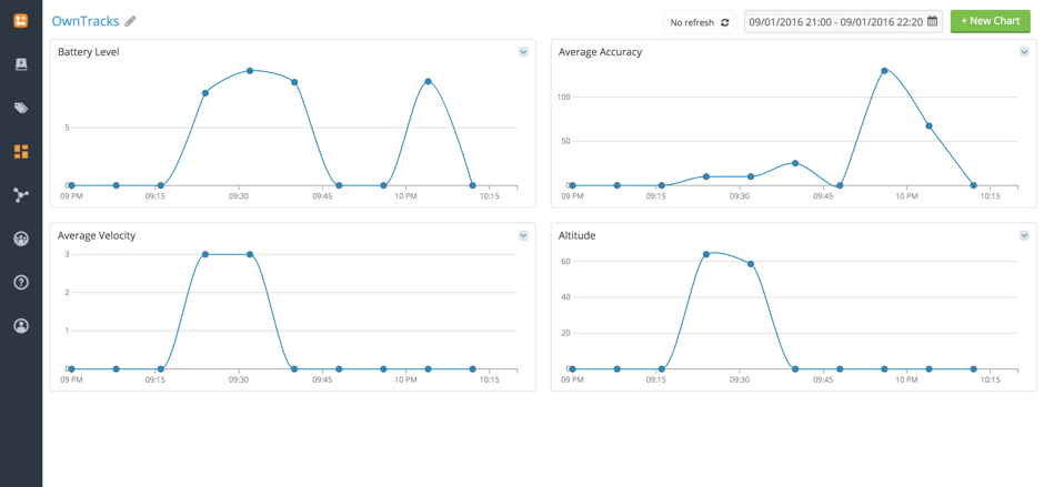 We’ve developed the OwnTracks pack that can be installed from your Logentries dashboard, so that you don’t have to start your OwnTracks log analysis from scratch. This pack is equipped with alerts such as: