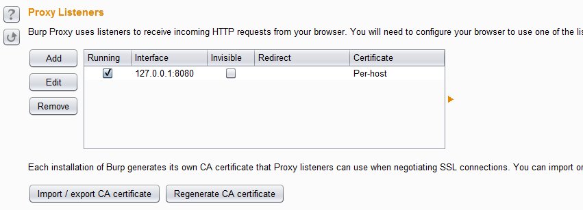 - Under proxy listeners you will see a listening ip address and port already setup and running. Normally it is 127.0.0.1 and port 8080. If you are using port 8080 for anything else on your computer you will need to edit the setting and change the port to something you are not using. Click the Intercept tab which is to the left of the Options tab and make sure Intercept is off.