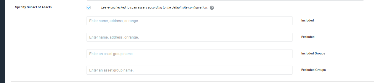 Site Asset Range x.x.x.1 - x.x.x.255. You choose to schedule a scan only by specifying by group 'Subset A'