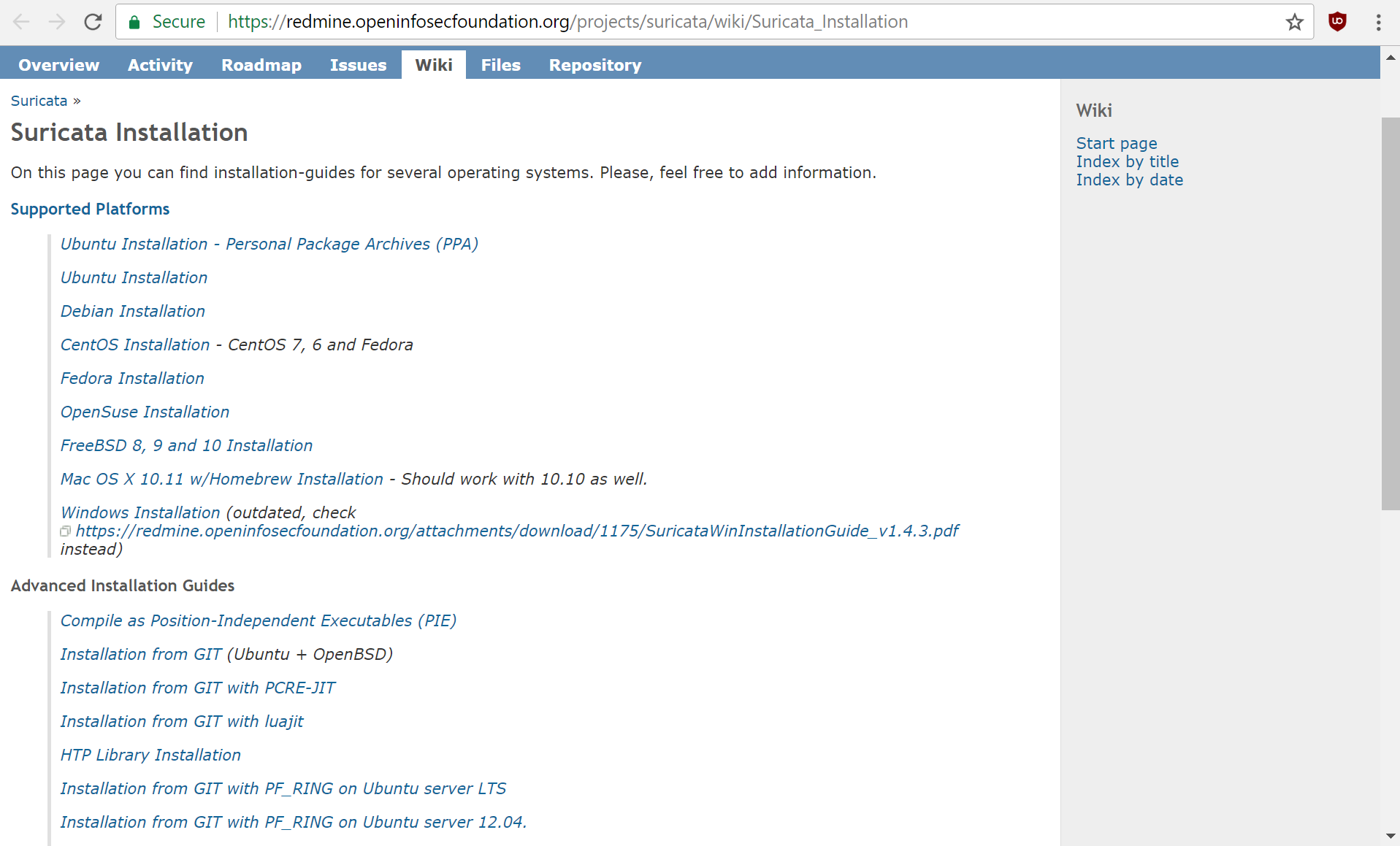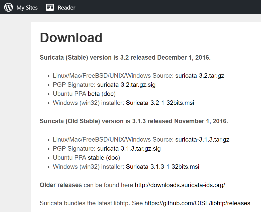 If you intend to compile your own executable Suricata IDS or IPS, you will need to visit their installation page instead. Select the guide for your system and read through the instructions. The OISF offer guides for all supported platforms, as well as advanced installation guides for more complex configurations.