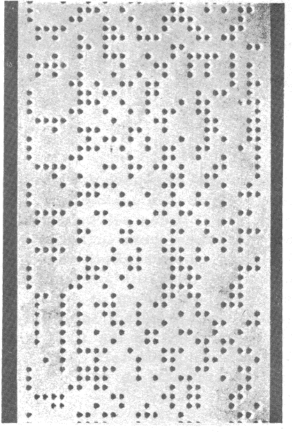 The paper in which call information was recorded is called AMA Tape. An AMA puncher machine made perforations in a Braille-like format that reported the caller, the callee and the call duration. (Please see Figure 7, below)