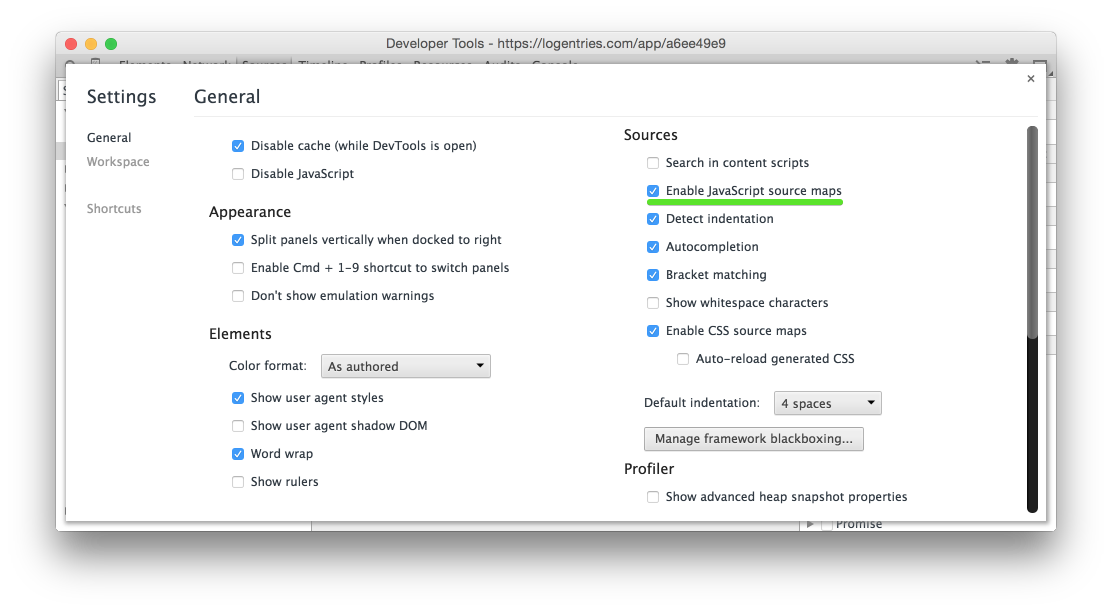 Now each compressed asset file contains a link pointing to its source map, and we've just told Chrome not to ignore them.