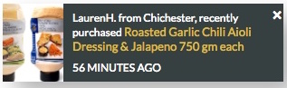The purported use case is that by demonstrating existing customer activity, it replicates the public bustle and hubbub of a real-world shop, and makes potential customers more engaged. As you can see, the example above contains personal information about the customer (first name, last initial, city).