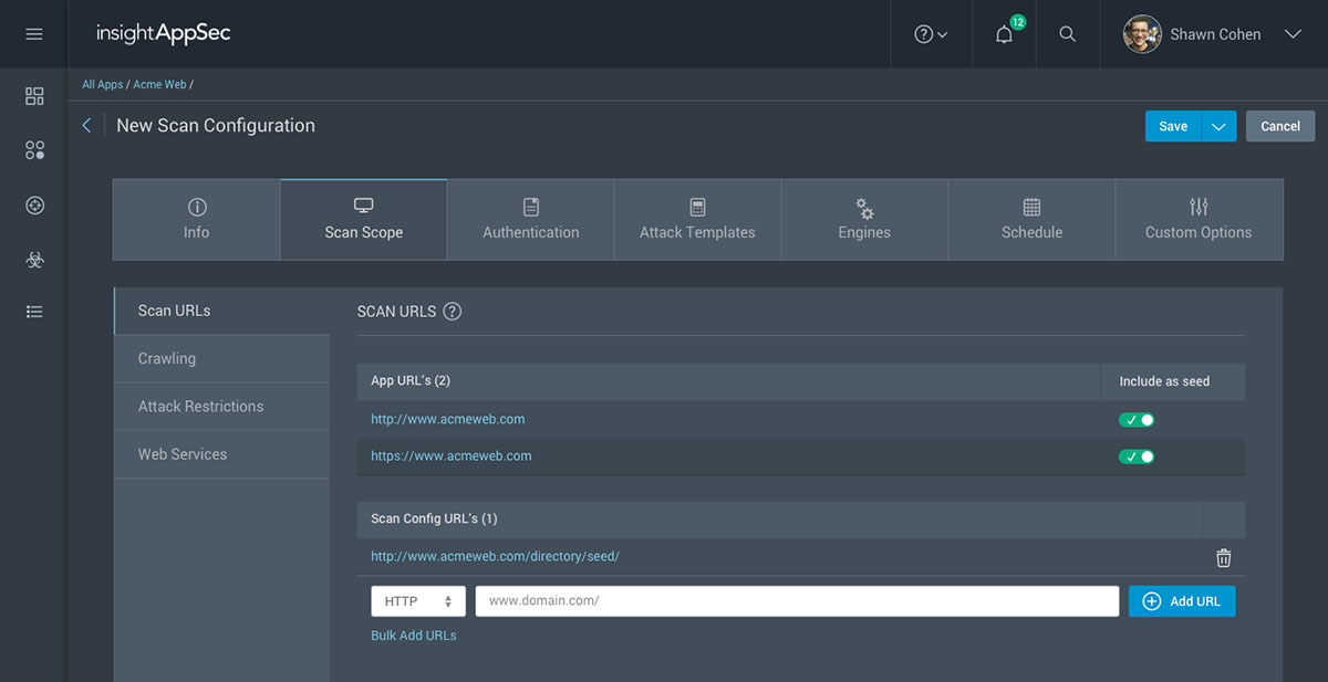 - App Portfolios: Group your targets and scans into “apps” to better manage vulnerabilities identified across multiple URLs and sites relevant to an application. This allows you to stay on top of your app's security risks whether they are identified in production, testing, or in its APIs and data services.