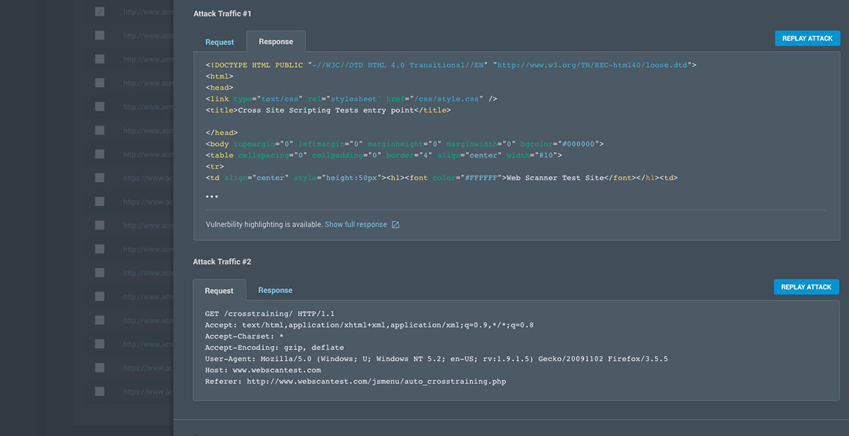 - Attack Replay: Empower your development team with the ability to confirm vulnerabilities and test fixes on their own. Exportable interactive HTML reporting allows developers to replay attacks so that remediation isn't unnecessarily delayed.