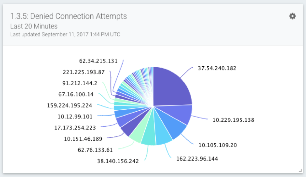 The above card is a standard, important use-case to identify anomalies and trends from your firewall data. In this case, the card runs the query, “where(connection_status=DENY) groupby(source_address)” over your firewall log data.