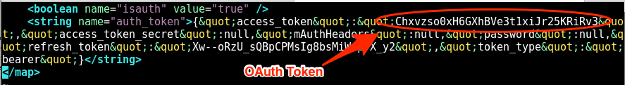 To determine the longevity of this preference file, the Android device was rebooted, after which the unencrypted OAuth token shown in Figure 1 below was still present. It was determined that the token remained until the user logged off manually. Based on the nature of IoT technology, users typically stay logged in, however. Thus the authentication tokens are likely to stay valid indefinitely, unless the user doesn't interact with the application for more than 30 days.