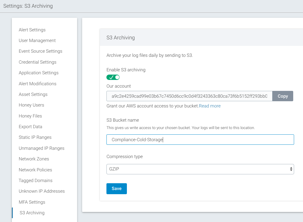 For further details, see the S3 Archiving docs page: https://insightidr.help.rapid7.com/v1.0/docs/s3-archiving