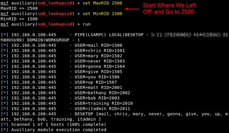 We’ve added a new option to the smb_lookupsid Metasploit module. You can now specify your starting RID.
