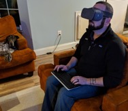 Overall, this reuse of the Mifi hotspot was amazingly clear and filled me with cheer when I got it to work on the first try, but there are some things to be aware of, lest your heart be filled with humbugs for the season. One, you will need to know how to type without looking at the keyboard. Two, God forbid you would like a little eggnog or mulled wine, because finding your festive mug is a bit difficult in headgear. Three, be prepared for regular breaks. Eye strain while getting used to the headgear and VR environment is taxing. I’d suggest a break for milk and cookies at regular intervals.