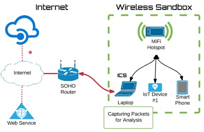 When it comes to testing the security of IoT, traffic analysis is essential to understanding how all the components work together. Many devices have different communication capabilities that can include, but is not limited to, wireless 802.11, Bluetooth, Zwave, cellular, or hardwire ethernet. Therefore, the third re-use of the old MiFi device can come in very handy when attempting to assess wireless 802.11 network traffic. Keep in mind that the MiFi hotspot device we are using for this write-up doesn’t have cellular access or internet capabilities.
