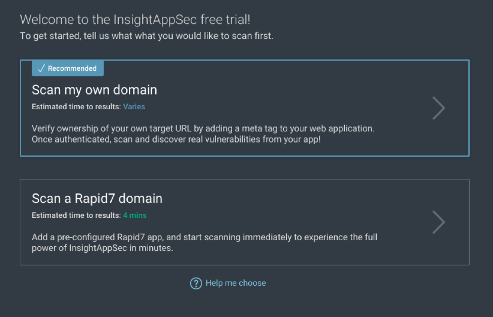 When adding your app to the InsightAppSec free trial, you’ll be given an option to “Scan my own domain”: