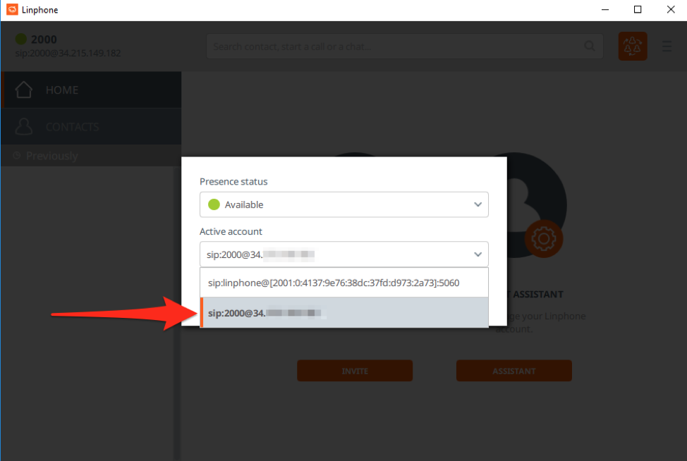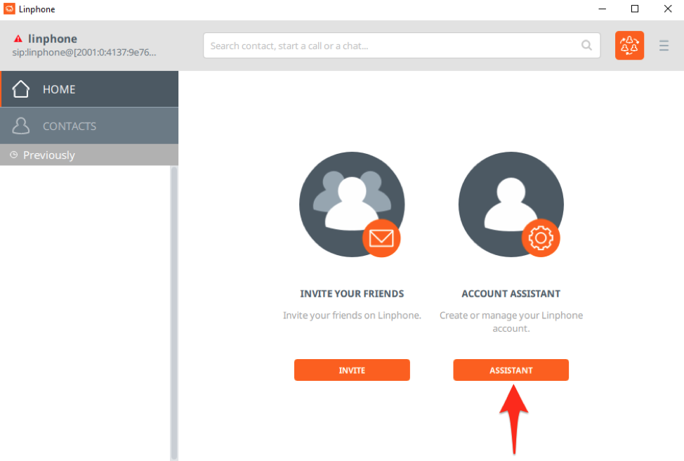 Once you have Linphone installed, open the program and click “Account Assistant”: