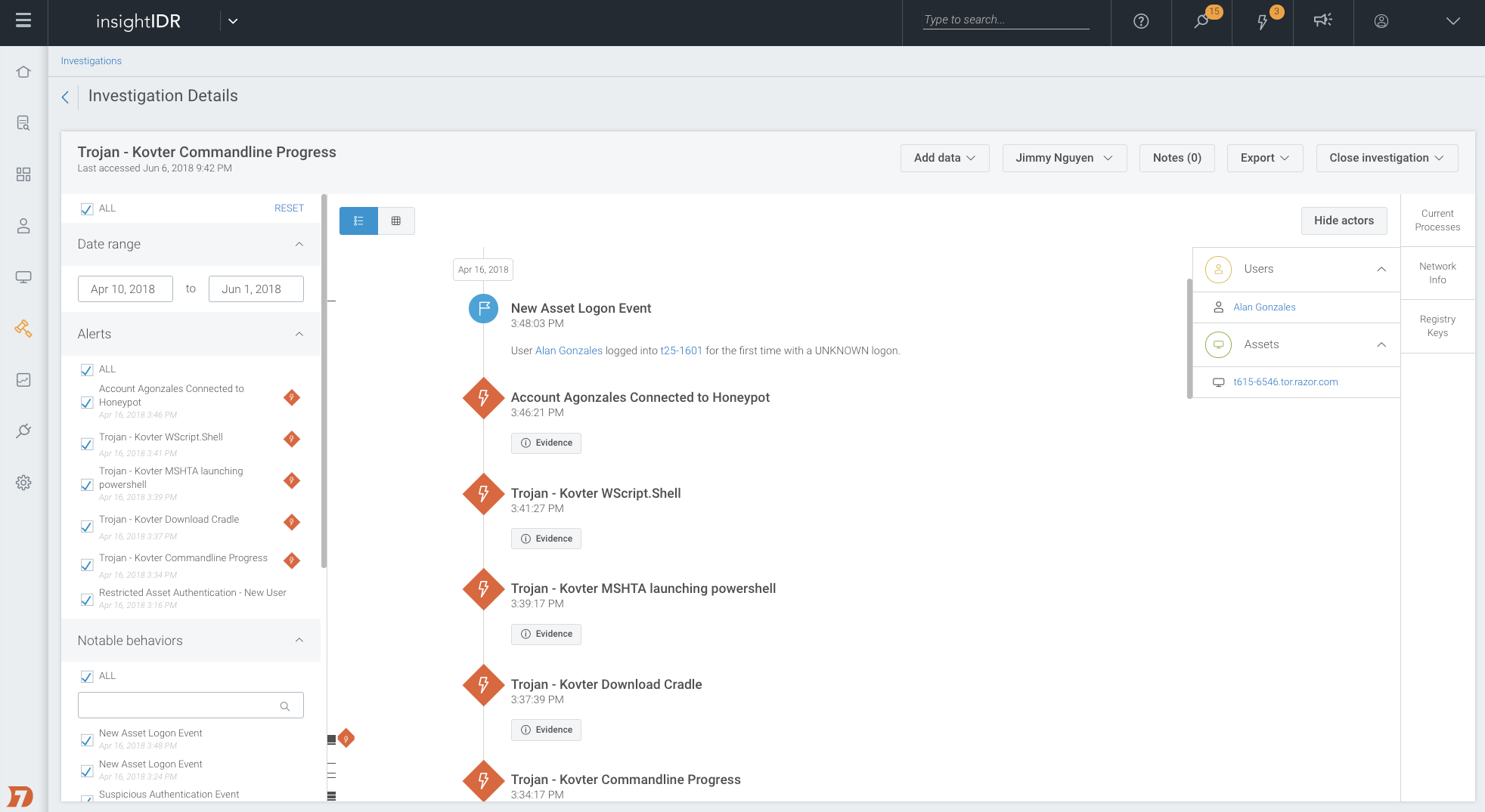 Any of these indicators can be added to a custom phishing indicator database for your organization so that your team can leverage the insights from past investigations. The more you train InsightPhishing, the better it gets. If you identify a malicious phish, you can use a SIEM like Rapid7's InsightIDR to scope out affected users, gain additional context, and improve your defenses. InsightIDR applies two layers of analytics to your data to find attacks: user behavior analytics (UBA) to find users exhibiting behaviors indicative of compromise, and attacker behavior analytics (ABA) to hunt the underlying techniques attackers use time and time again.