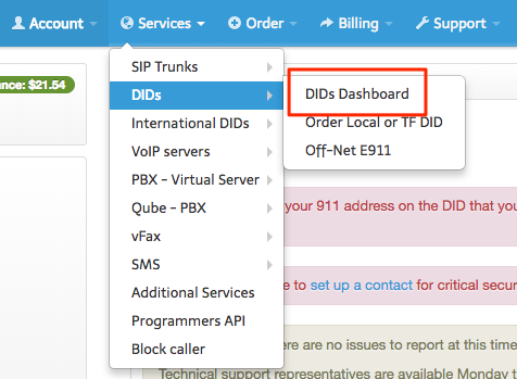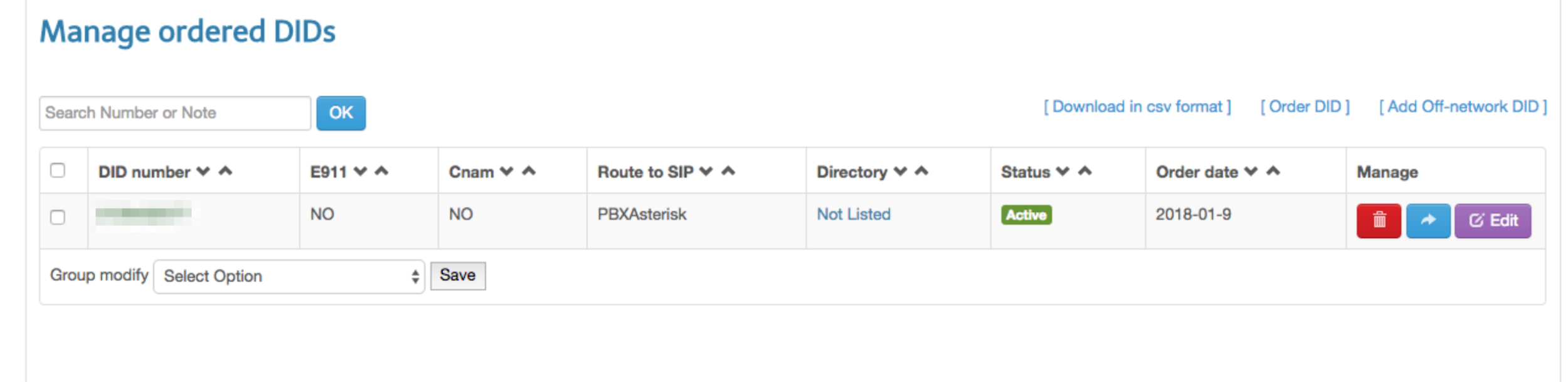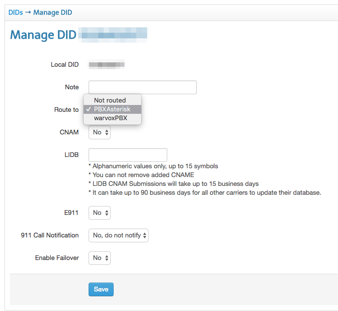 This step will be done through your service provider. You need to choose your external DID telephone number which will be used to externally dial in to your PBX. If your provider has a login portal like mine, you should be able to set this up online. Here’s an example of what it looks like on my provider’s portal: