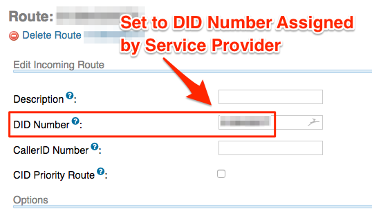 - Enter your DID telephone number provided from your service provider.