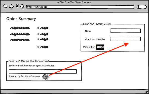 Modern web design is like car manufacturing. Just as car manufacturers depend on suppliers for components and even whole sub-assemblies, so do web application developers. Relying on subcontractors for expertise helps reduce risk. Why learn the intricacies of developing ignition systems when you can buy one from Bosch? Similarly, why learn the details of protecting payments when you can rely on a service to do so?