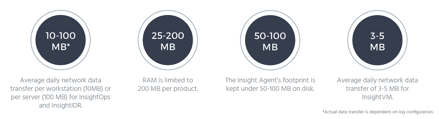 Rapid7’s Insight Agent is a single cloud-based agent that works across our entire portfolio of products, meaning it can perform vulnerability assessment as well as real-time incident detection and response. With the Insight Agent, all computation is done remotely in the cloud, resulting in minimal impact to end users and endpoint performance. With the smallest possible footprint, and because it doesn’t require embedded credentials, Insight Agent will never slow you down and will always give you real-time, accurate results.