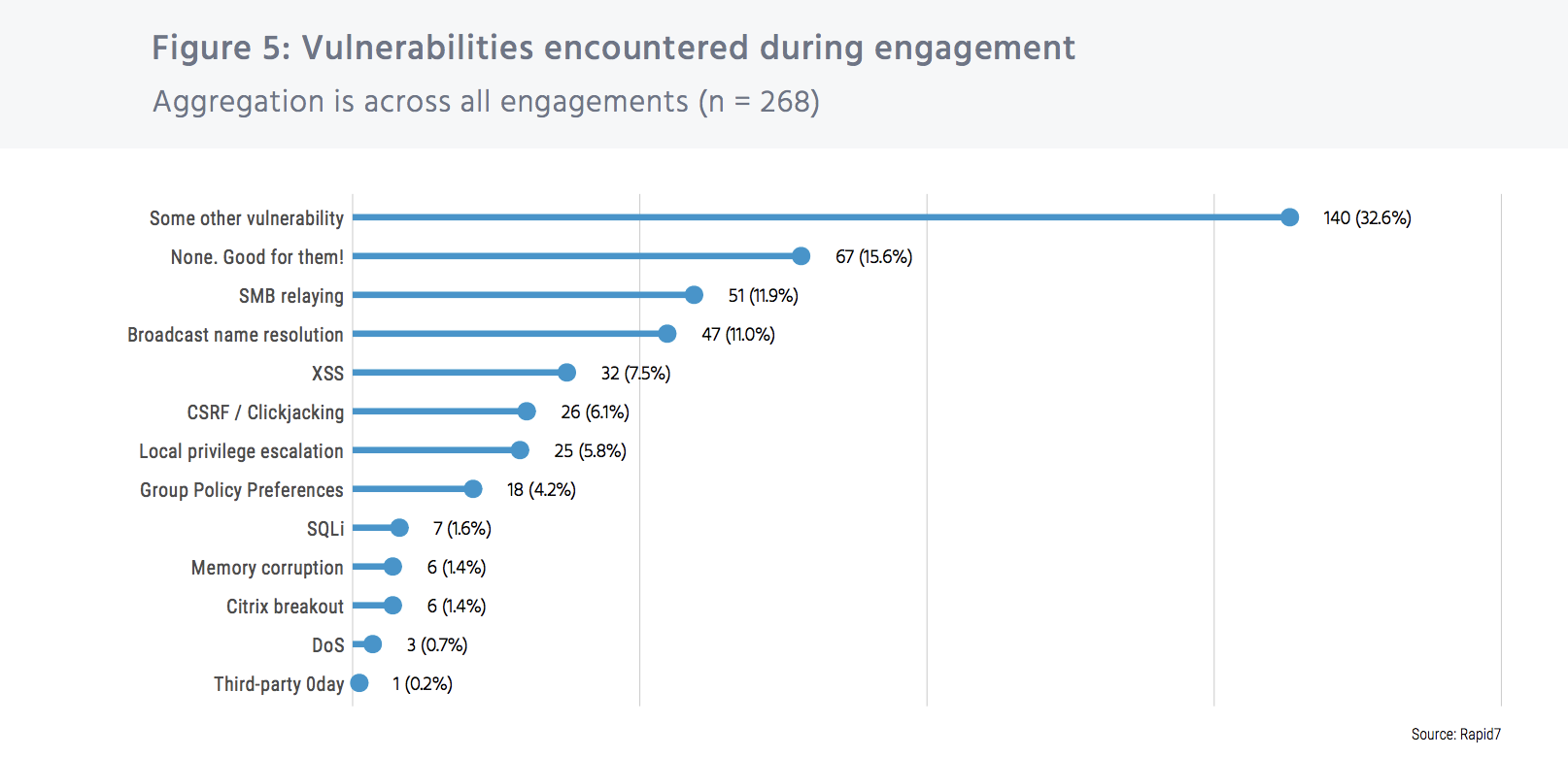 Do you see what we see? Another interesting data point is the lack of third-party, zero-day vulnerabilities encountered and exploited in our testing. And the single reported case of zero-day use was in combination with cross-site scripting (XSS) and “some other vulnerability,” meaning the zero-day was only part of the engagement’s success. This means…