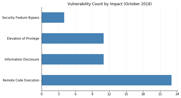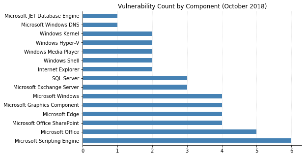 As usual, most of the vulnerabilities this month affect browsers (IE and/or Edge). IE 11 in particular has two nasty RCEs: CVE-2018-8460 and CVE-2018-8491 can both be exploited via browsing to a malicious web page. CVE-2018-8494 is a Critical RCE in MS XML, meaning browsers are a potential vector. Hyper-V also has two Critical RCEs: both CVE-2018-8489 and CVE-2018-8490 could allow a guest operating system to cause the host to execute arbitrary code.