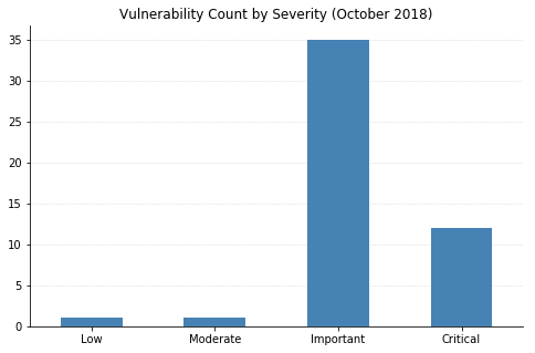This month's patches from Microsoft include fixes for 50 distinct vulnerabilities. One that's already been seen exploited in the wild is CVE-2018-8453, a privilege escalation vulnerability allowing an attacker to gain full control over a system as long as they first have a way to execute code on an affected system (for example via a Remote Code Execution (RCE) vulnerability, which nearly half of this month's flaws are).