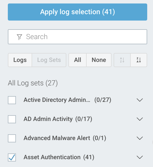 Start with the Log Sets view, and select your Asset Authentication data set.