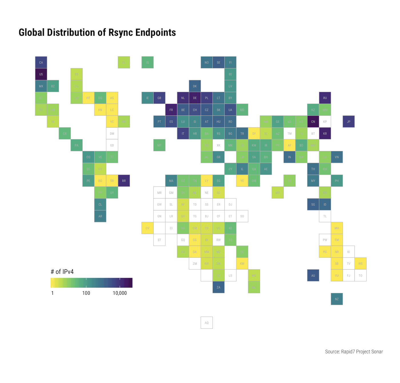 We welcome any feedback on this topic and encourage collaboration. Reach out to us via the comments, on Twitter (@rapid7), or via [email protected]. Also, check out another view of rsync exposure from our friends over at BinaryEdge.
