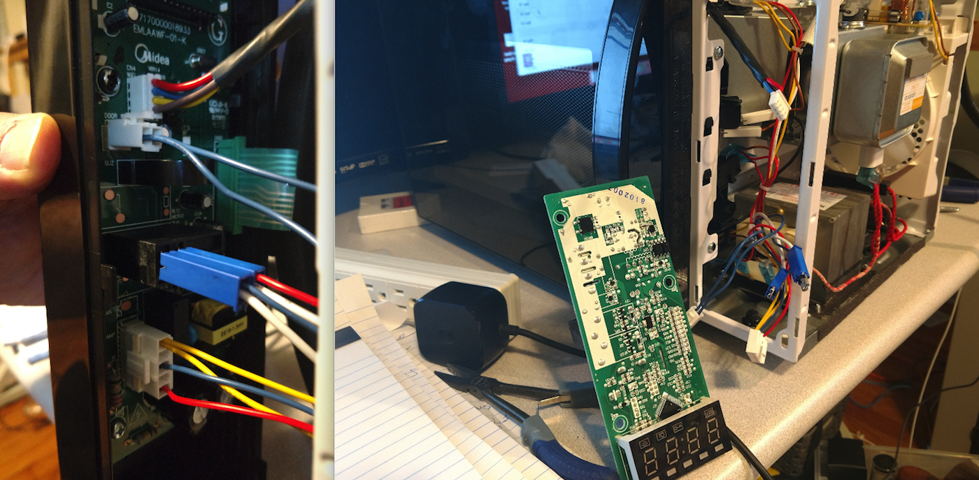 Here, all caution should be taken to not move, change, or damage any of the oven shielding components. At that point, I was only interested in examining the electronics. In this case, there was only one circuit board, so I first documented all of the plugs and wiring connectors, then carefully removed the board from the chassis for examination.