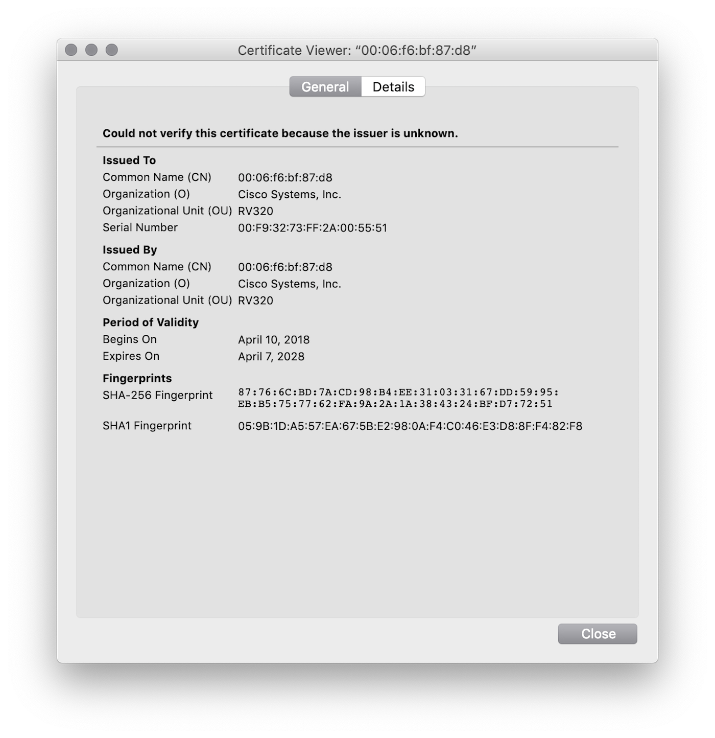Rapid7 Labs was able to determine the possible extent of the exposure without resorting to configuring a new Project Sonar scan using the weak configuration URL exposure. Cisco® provides SSL certificates for these devices, and they are all self-signed SSL certificates with the subject and issuer containing the MAC address of the device in question and an OU corresponding to the model number: