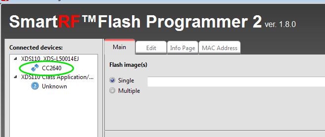 To read the MCU’s flash, you’ll need to install the SmartFlash Programmer 2 application from TI on a Windows host. Once installed, we can plug the XDS110 debugger into the USB and the application should detect the debugger and the target device’s MCU:
